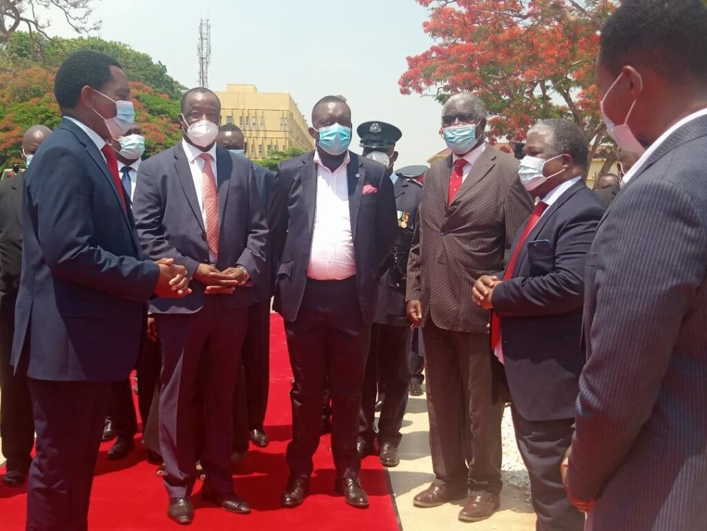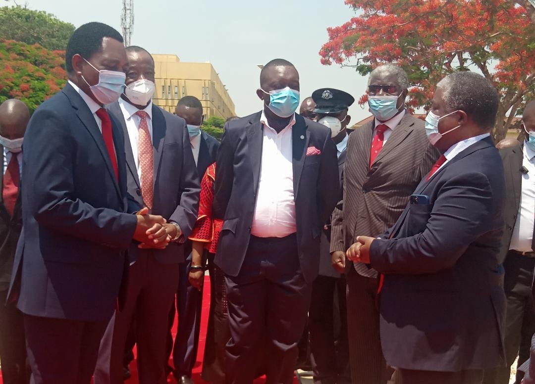 President Hichilema, accompanied by Minister of Local Government Gary Nkombo and Home Affairs Minister Jack Mwiimbu, chatted with members of the FTJ Memorial Committee who included Mr Mzee Chikamba (chairman), Dr Richard Sakala and Mr Darlington Chiluba, son to the late President.