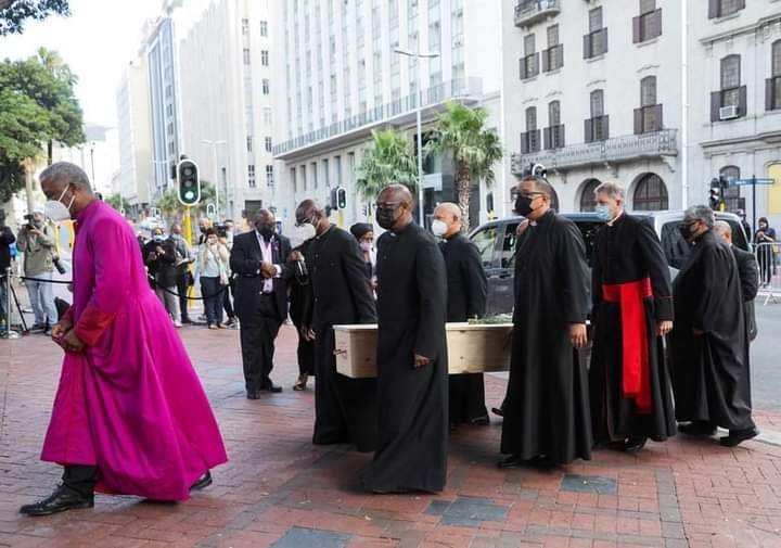 Mourners have been filing past the coffin of Archbishop Desmond Tutu, as his body lies in state at St George’s Cathedral in Cape Town, South Africa.
