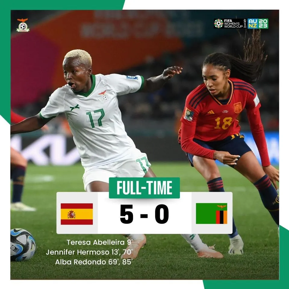THE Copper Queens dream to go past the Group Stage at the Ongoing 2023 FIFA Women’s World Cup in Australia and New Zealand was yesterday crashed after Spain handed the Copper Queens a consecutive 5-0 beating in a Group C fixture played at Eden Park in Auckland.