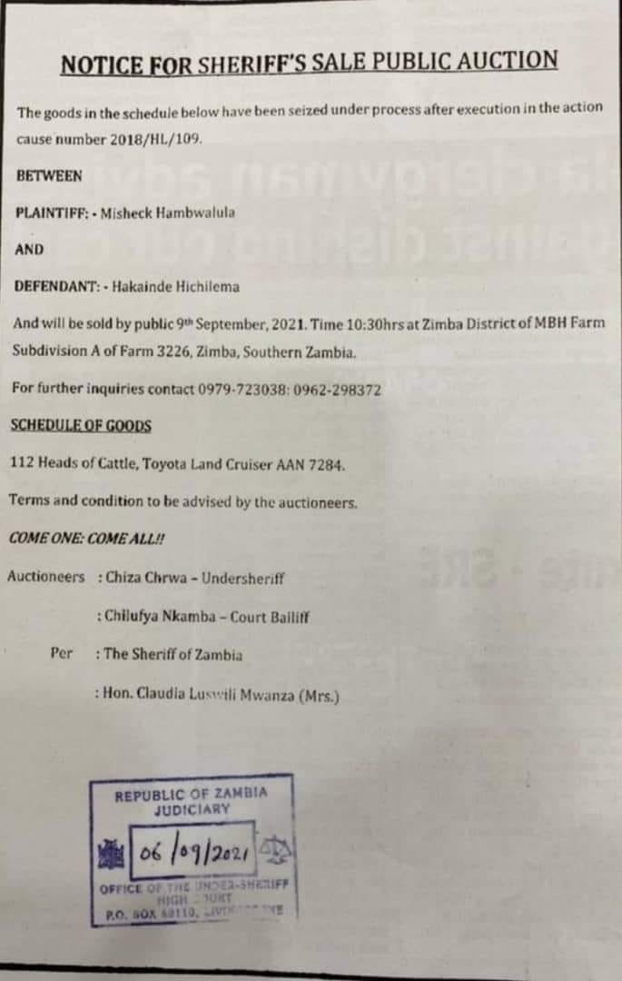 By GRACE CHAILE LESOETSAA KALOMO farmer who was condemned to pay Hakainde…