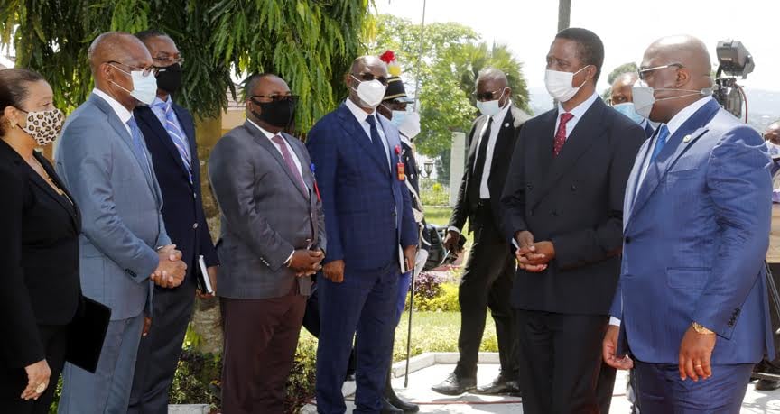 President Edgar Chagwa Lungu (second from right) being introduced to a delegation from the Democratic Republic of Congo by President Felix Tshisekedi (right) in Kinshasa, Democratic Republic of Congo (DRC) on Saturday.April 24, 2021. PICTURE BY SALIM HENRY/STATE HOUSE ©2021