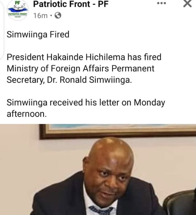 President Hakainde Hichilema has revealed on Radio that he fired a named individual at the ministry of Foreign Affairs who recalled Zambian diplomats and organised a list of new appointees without authorisation.President Hichilema said the named individual, added to his list,relatives and friends.Two days ago, the firing of Foreign Affairs permanent secretary Ronald Simwiinga was announced by the Patriotic Front Social Media Page.